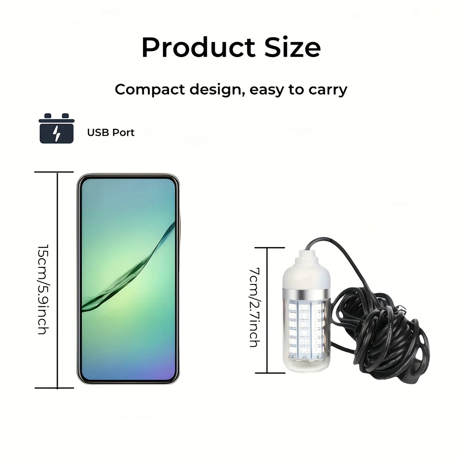 With an IP68 waterproof rating, this lamp is fully submersible and built to handle harsh saltwater conditions. The USB-powered design makes it easy to run from a power bank, boat USB port, or portable battery, while the 196.85-inch (5m) cable gives you plenty of reach to position the light at the ideal depth.
