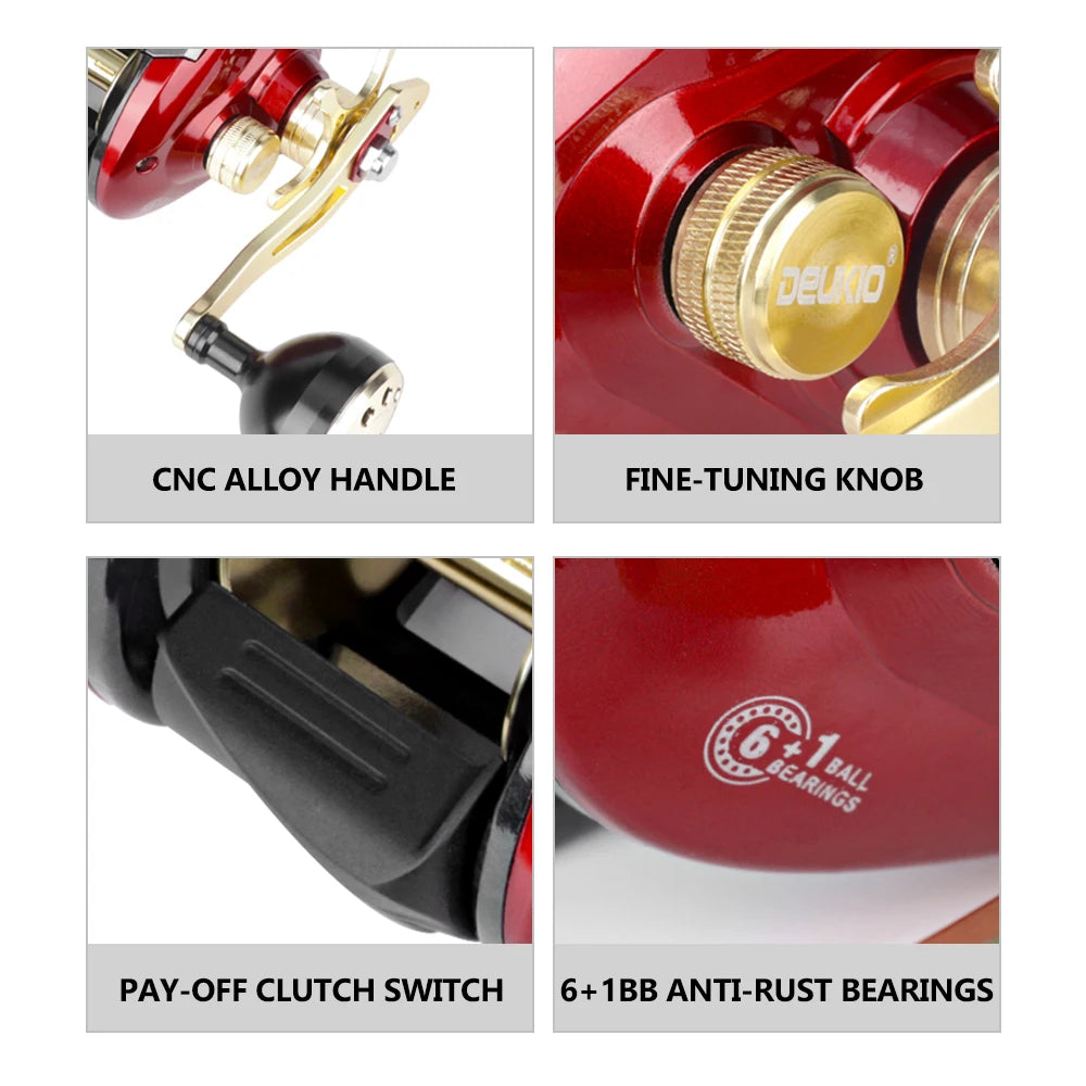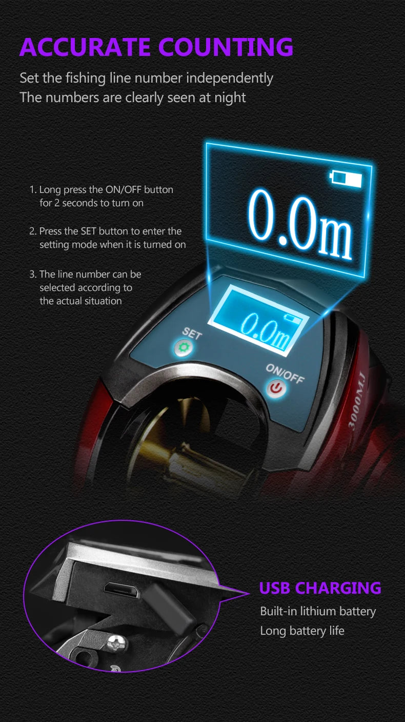 DEUKIO Full Metal Line Counter Baitcasting Reel | 6+1BB | LED Digital Display | Left & Right Hand