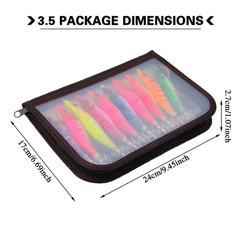 Squid & Cuttlefish Jig Set (10-Pack) | 3.5# | 19.5g | Luminous Octopus Shrimp Jigs with 3D Eyes