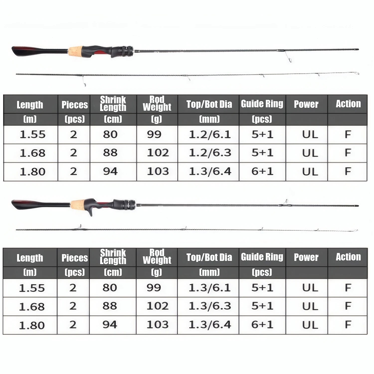 Experience precision and agility with the UL Ultra Light Carbon Fiber Lure Fishing Rod, designed for targeting carp, bass, and trout. Crafted from durable carbon fiber, this spinning rod offers a fast action and high sensitivity, allowing you to feel every nibble. With a fishing power of 10-14lb (4.54-6.35kg), it handles small to medium bait with ease, while the 1.2mm tip diameter enhances casting accuracy. Available in compact lengths of 1.8m and 1.68m, this two-piece rod is perfect for lightweight lure fishing, making it a reliable choice for Aussie anglers seeking versatility and performance on the water.